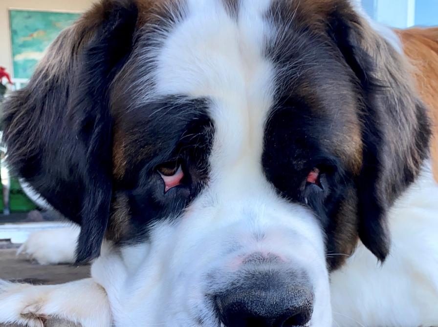 Cirka midtvejs holder vi en pause, og der får vi besøg af Joan og hendes dejlige hund, Tanja en 70 kg kærlig Sankt Bernhardhund. Det bliver så hyggeligt!